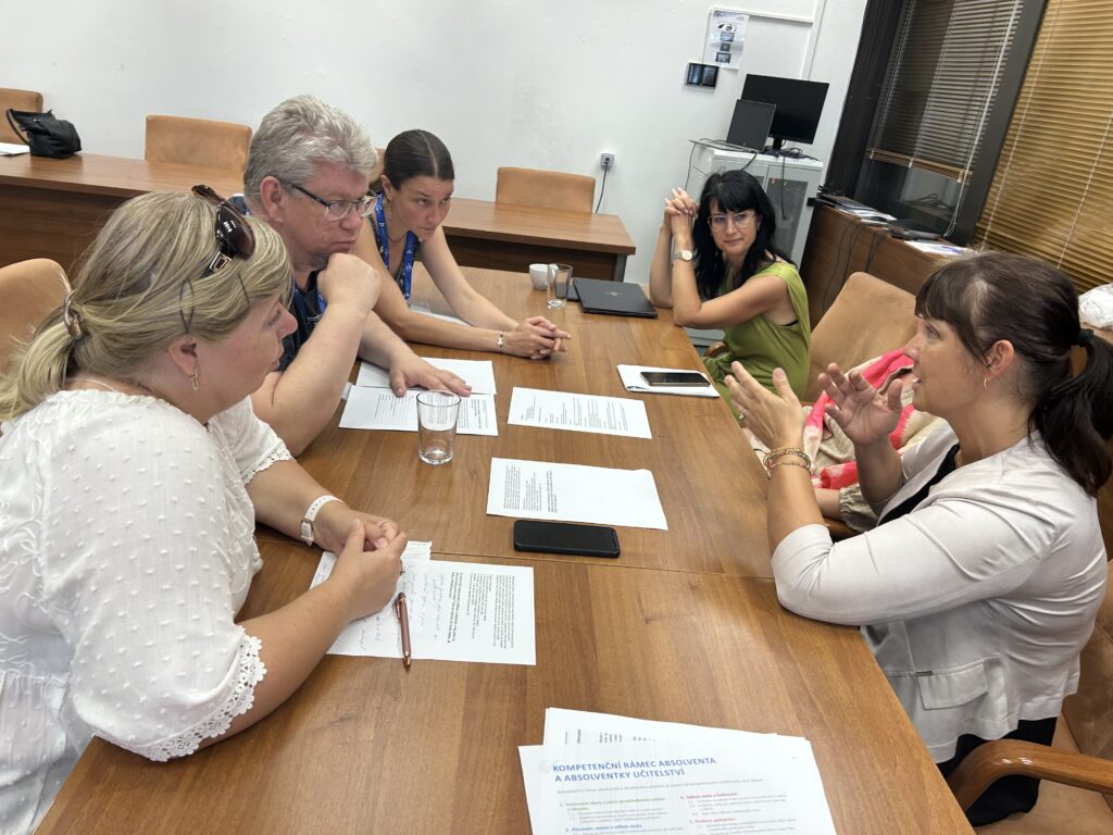 Dne 23. 6. 2025 jsme se v širším týmu autorů inovací sešli znovu. Úvod byl věnován další diskusi nad přípravou katedrální workshopů. Odborné skupiny autorů inovací navrhovaly cíle svých workshopů, diskutovaly vize kvalitní učitelské přípravy a propojily je s kompetenčním rámcem. Identifikovaly stávající praxi i oblasti pro rozvoj. Shodli jsme se na tom, že po absolvování katedrálních workshopů by měl každý pracovník katedry být schopen vyjmenovat základní oblasti KRAAU, vysvětlit roli KRAAU v přípravě učitelů a popsat, jak se rámec promítá do vlastní výuky.